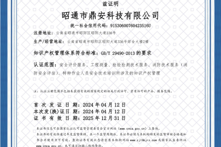 2003年11月10日,昭通市鼎安科技有限公司成立,初始主要從事第三方安全工程技術(shù)服務(wù),經(jīng)多年運(yùn)營,發(fā)展為多專業(yè)綜合科技平臺,為社會提供多種專業(yè)技術(shù)服務(wù)工作。 現(xiàn)公司注冊資金為1200萬元,公司法定代表人:毛衛(wèi)旭。公司主要業(yè)務(wù):安全評價(jià)、安全標(biāo)準(zhǔn)化評審、安全工程技術(shù)服務(wù);環(huán)境監(jiān)測、職業(yè)衛(wèi)生檢測、檢驗(yàn);法律訴訟及非訴訟服務(wù);司法鑒定、固定資產(chǎn)投資項(xiàng)目節(jié)能服務(wù);工程咨詢;工程測量測繪;安全教育培訓(xùn)等。是安全生產(chǎn)服務(wù)、安全教育培訓(xùn)機(jī)構(gòu),也是環(huán)境監(jiān)測和職業(yè)衛(wèi)生服務(wù)機(jī)構(gòu),同時(shí)也是綜合的檢測檢驗(yàn)、綜合科技平臺服務(wù)機(jī)構(gòu)。多年來為公、檢、法、司、軍、警、海關(guān)、仲裁、安監(jiān)、工礦商貿(mào)企業(yè)、社會團(tuán)體及個(gè)人提供多專業(yè)技術(shù)服務(wù)。